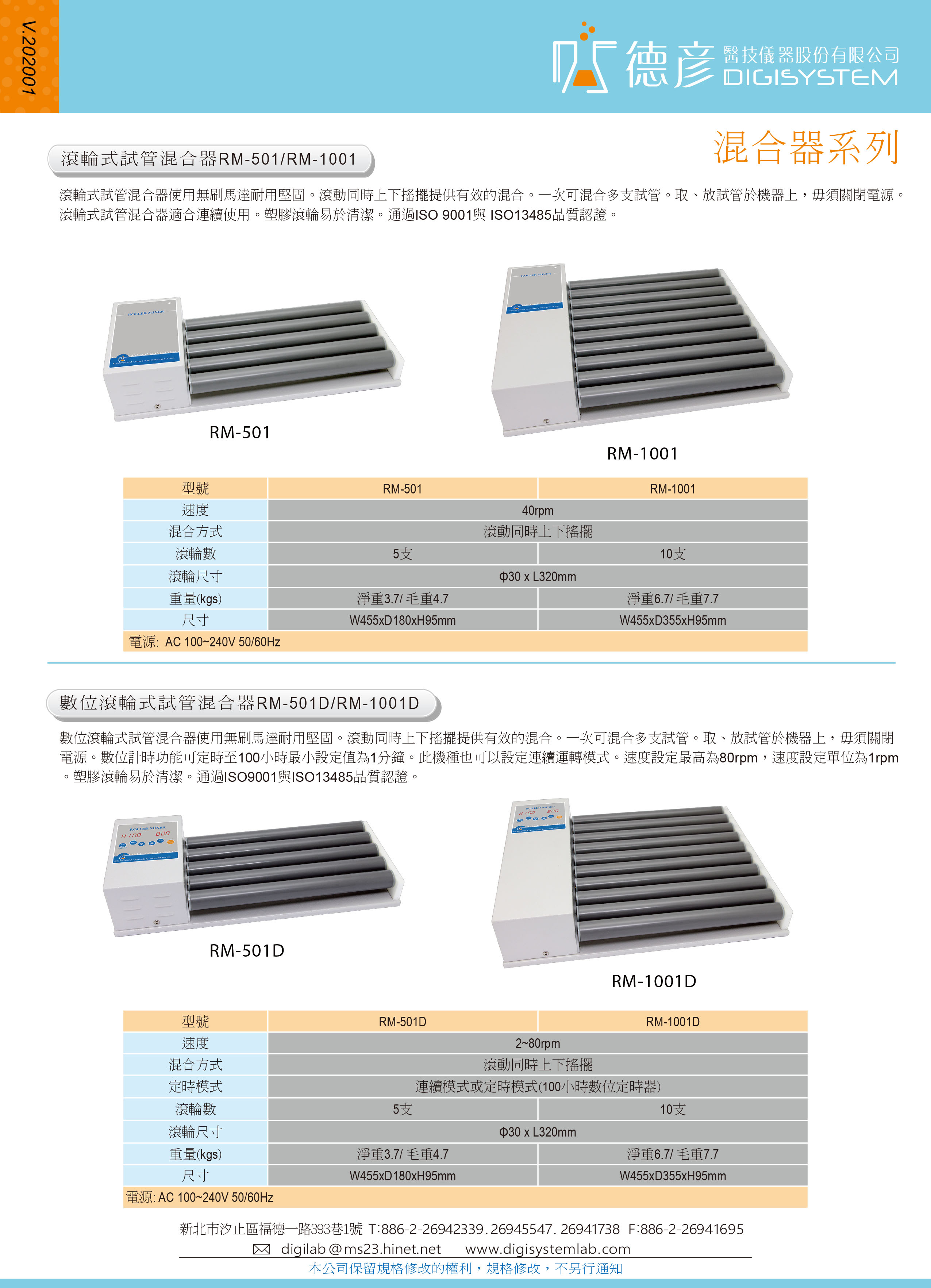• 滾輪式試管混合器 RM-501小巧不占空間、耐用堅固。
